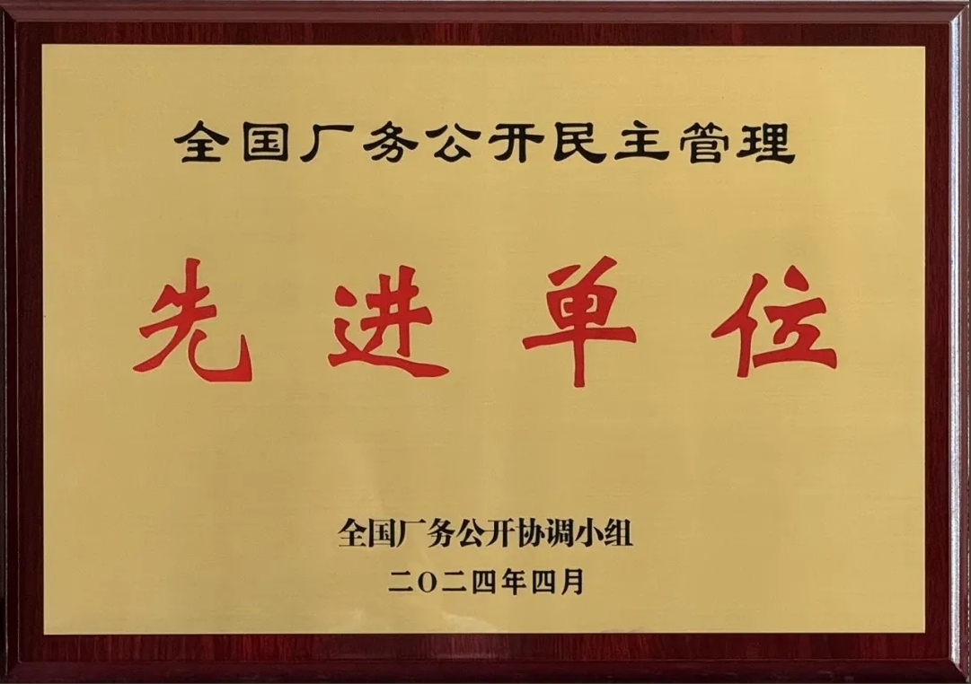 YP街机电子药业集团获得了“2021-2023年全国厂务公开民主管理先进单位”的表彰